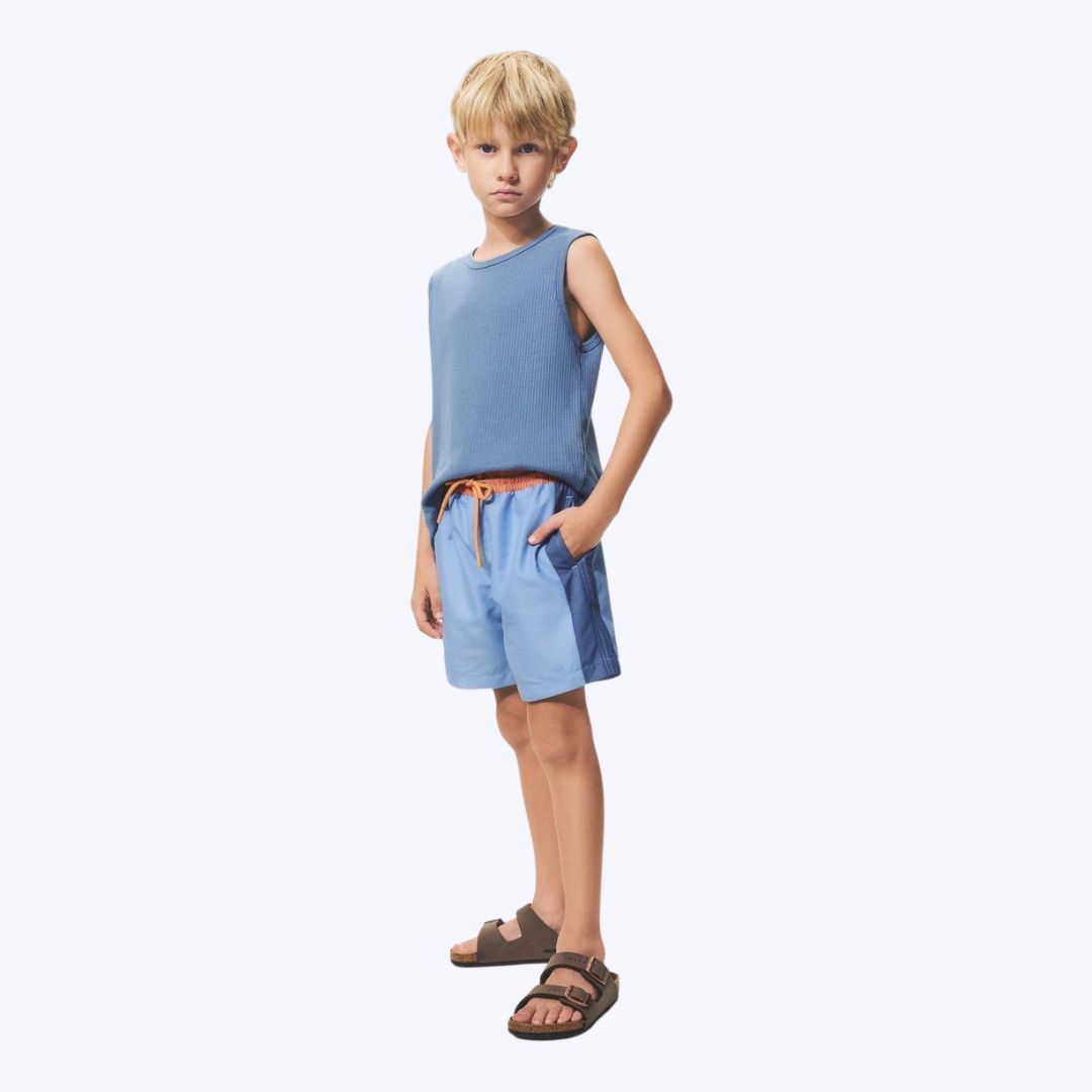 A Bermuda Azul Infantil Menino Hering Kids oferece conforto, estilo e praticidade para os pequenos, ideal para momentos de lazer com sua característica de secagem rápida.