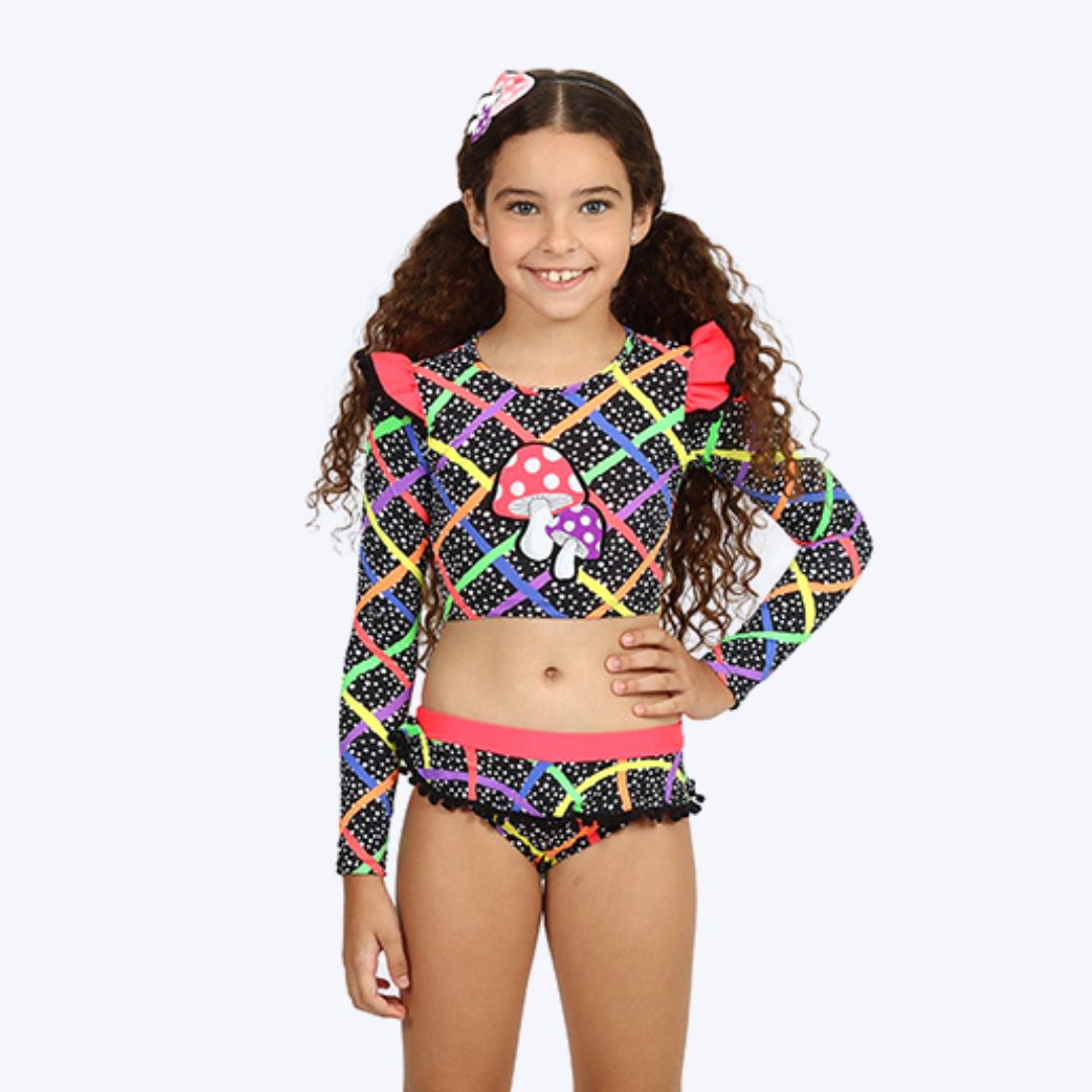 Biquíni Cropped Manga Longa e Calcinha Cogumelo Infantil Menina Moda Praia Siri Kids