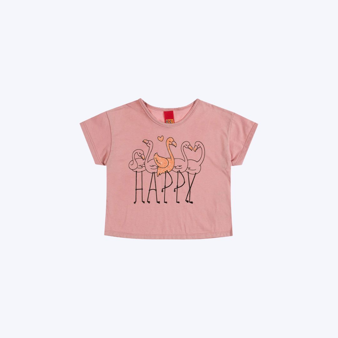 Blusa Cropped Flamingo Infantil Menina Kyly