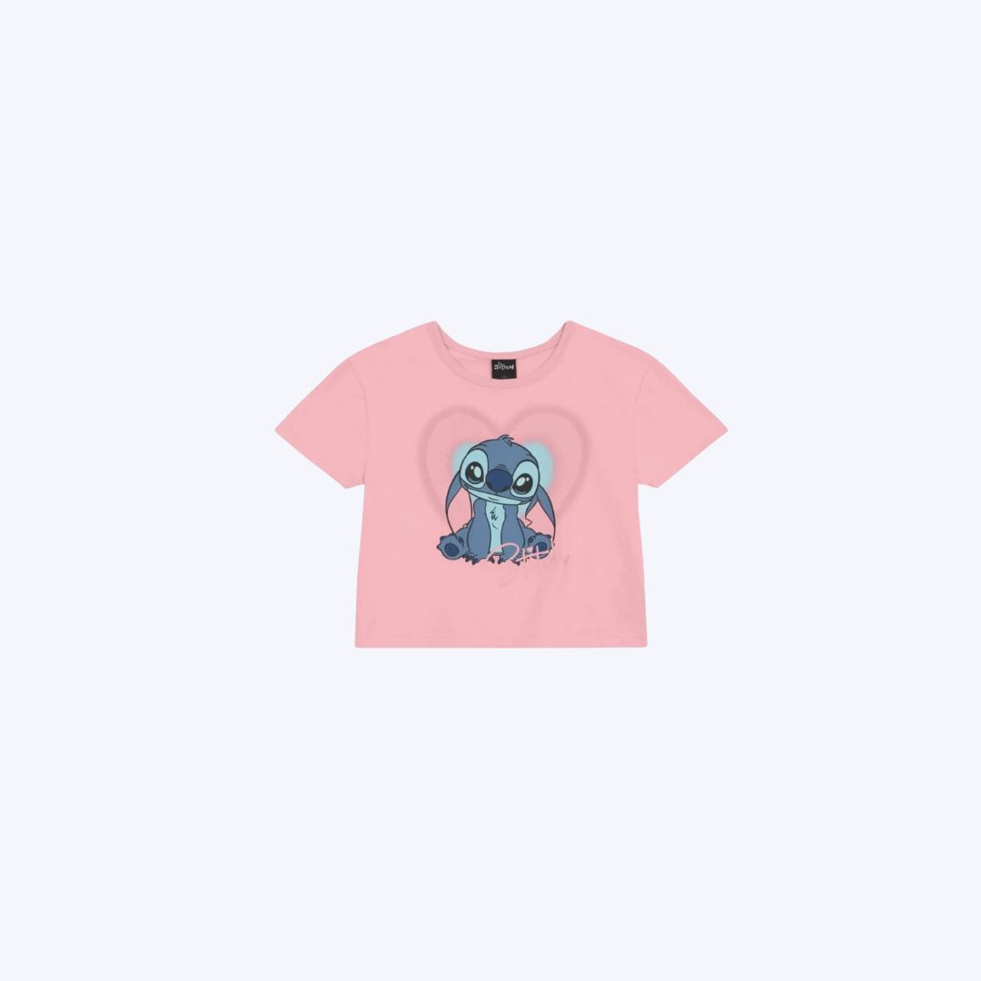 Estampa do Stitch com glitter e um coração encantador, que adiciona um toque mágico e divertido ao visual.