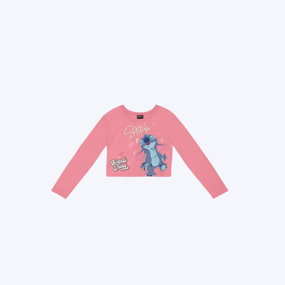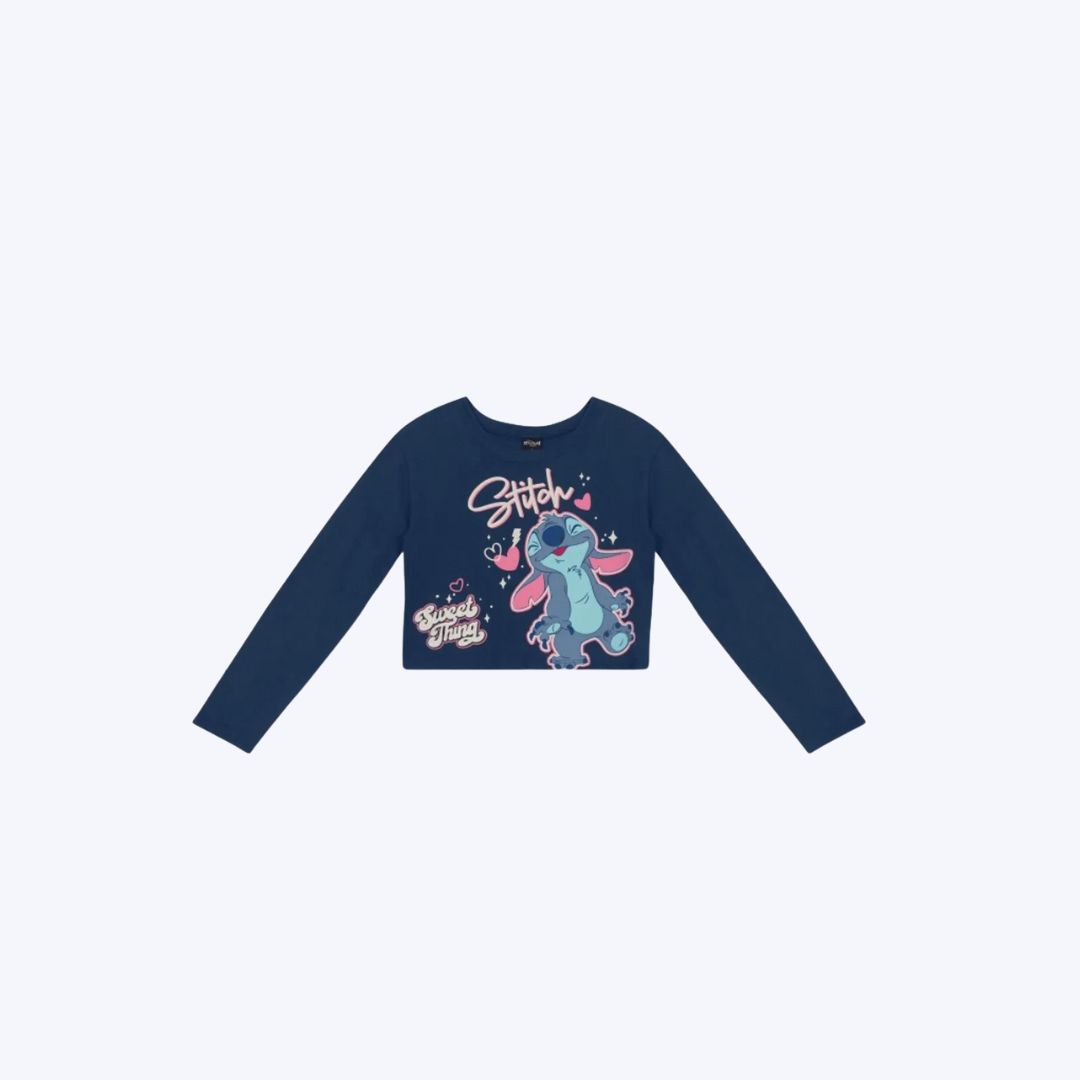 Blusa Cropped Manga Longa Stitch Infantil Menina Brandili