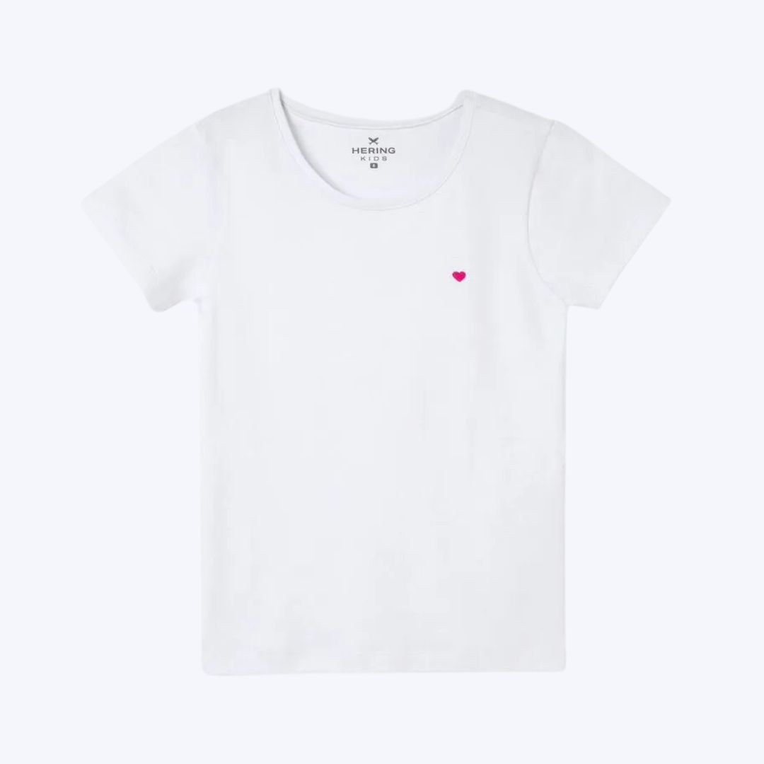Blusa Manga Curta Básica Branca Slim Com Bordado Coração Infantil Menina Hering Kids