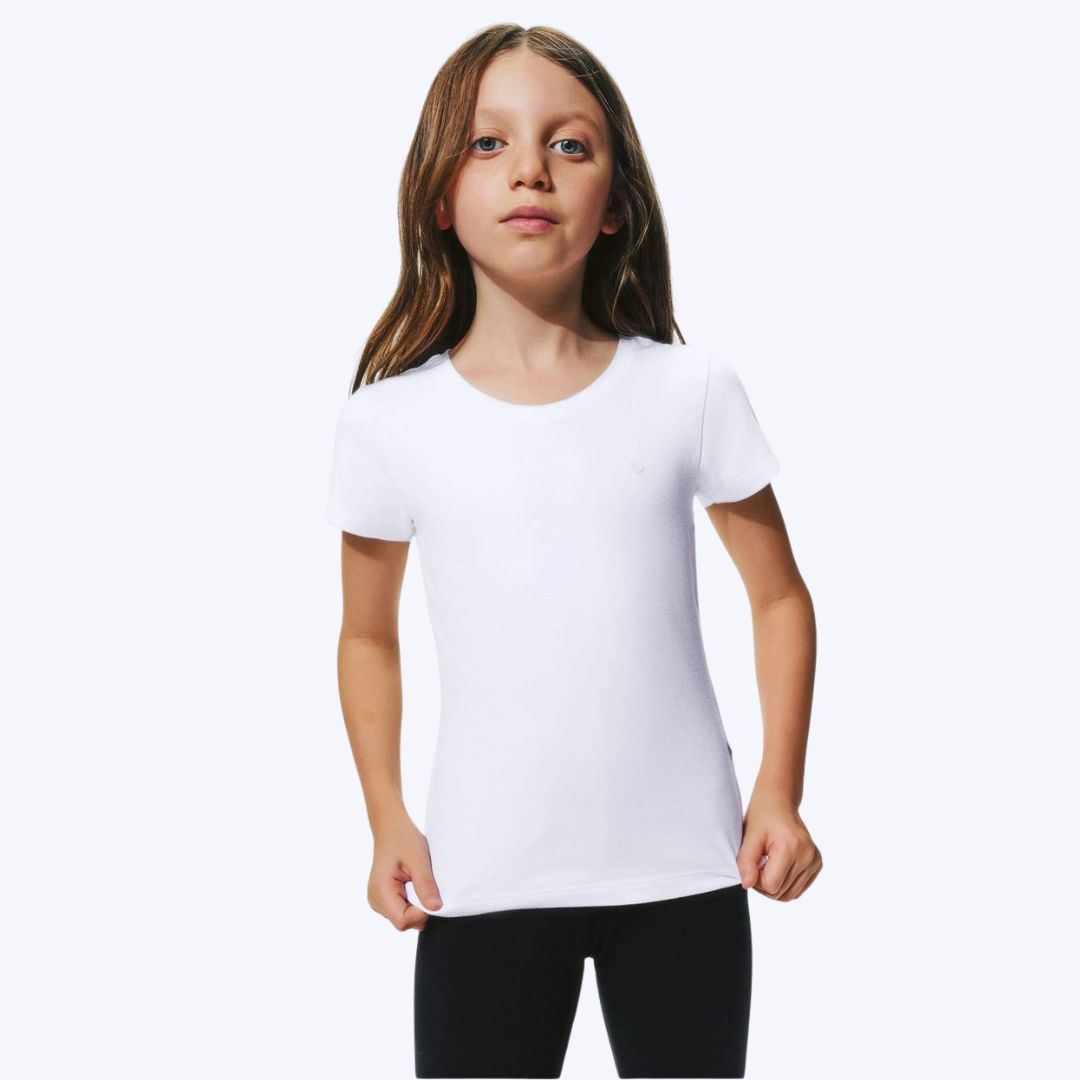 Blusa Básica Manga Curta Slim Branca Infantil Menina Hering Kids