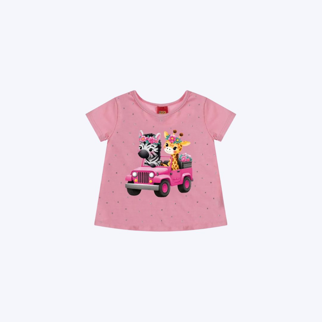 Blusa Manga Curta Bichinhos Infantil Menina Kyly