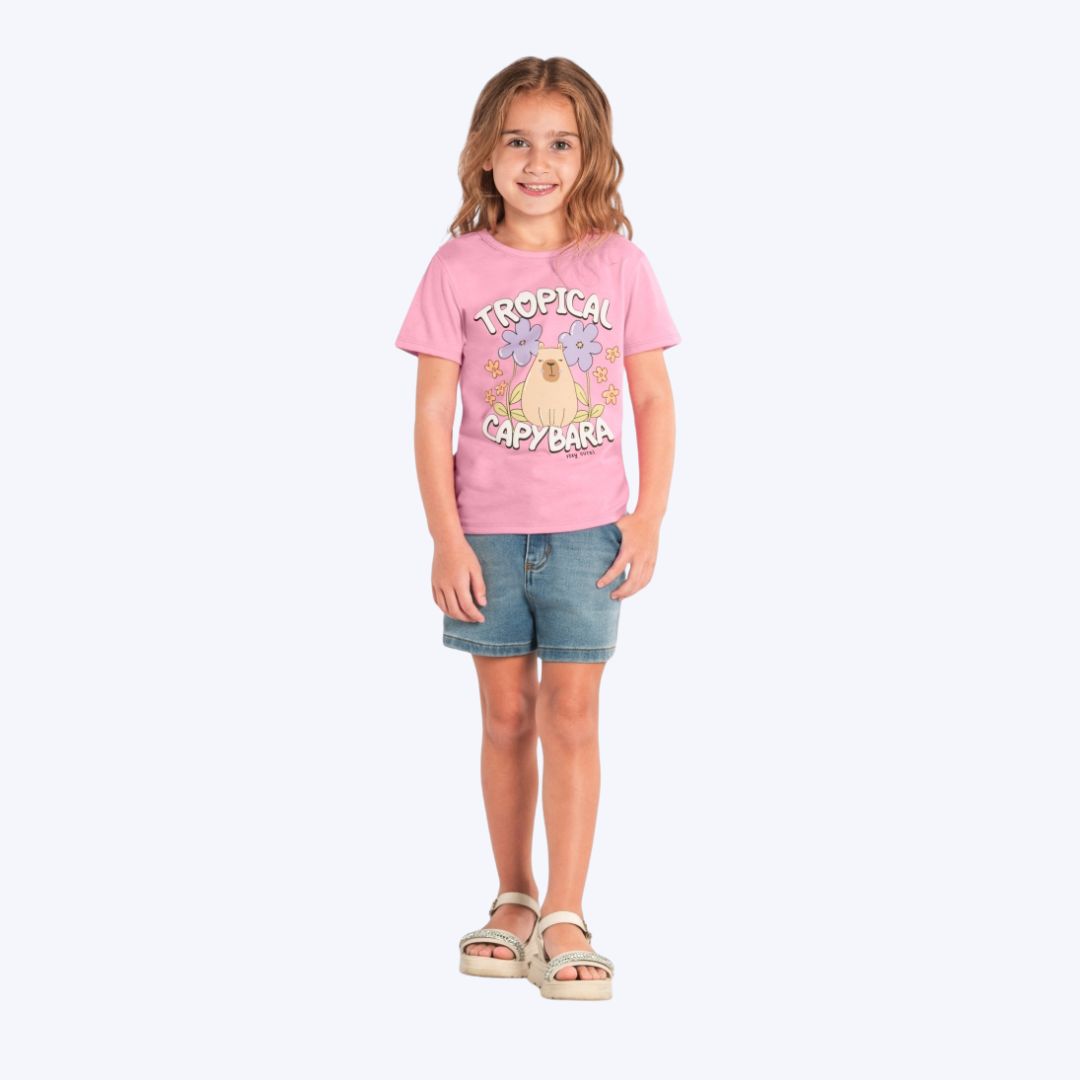 Blusa Manga Curta Capivara Tropical Infantil Menina Brandili