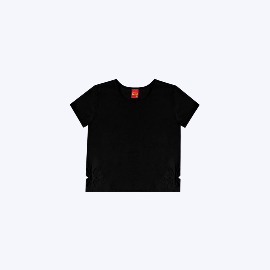 Blusa Manga Curta Cropped Corte A Laser Teen Menina Kyly