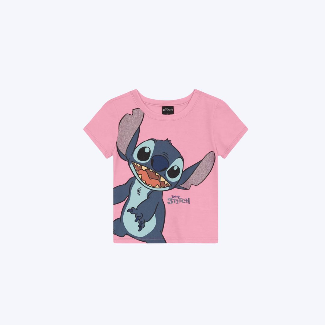 Blusa Manga Curta Stitch Glitter Infantil Menina Brandili