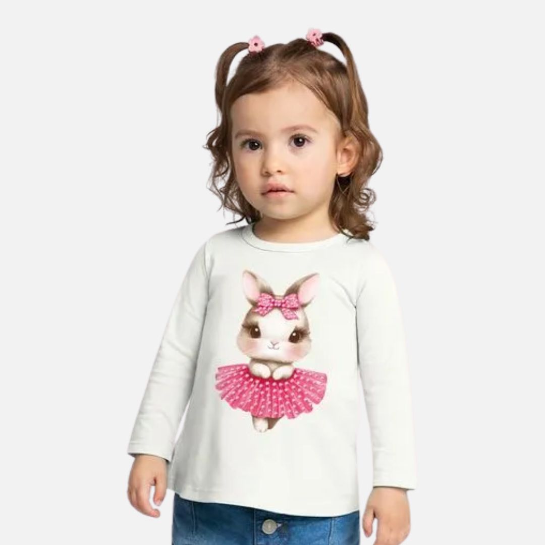 Blusa Manga Longa Coelhinha Infantil Menina Kyly