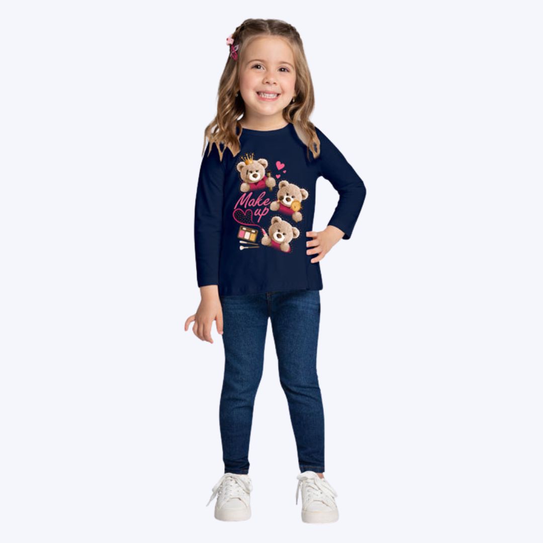 A estampa frontal de ursinhos traz um charme especial à peça, adicionando um toque de doçura e diversão ao look da criança. A manga longa oferece aconchego, sendo ideal para dias mais frios, mantendo as meninas quentinhas sem perder a leveza e o conforto.