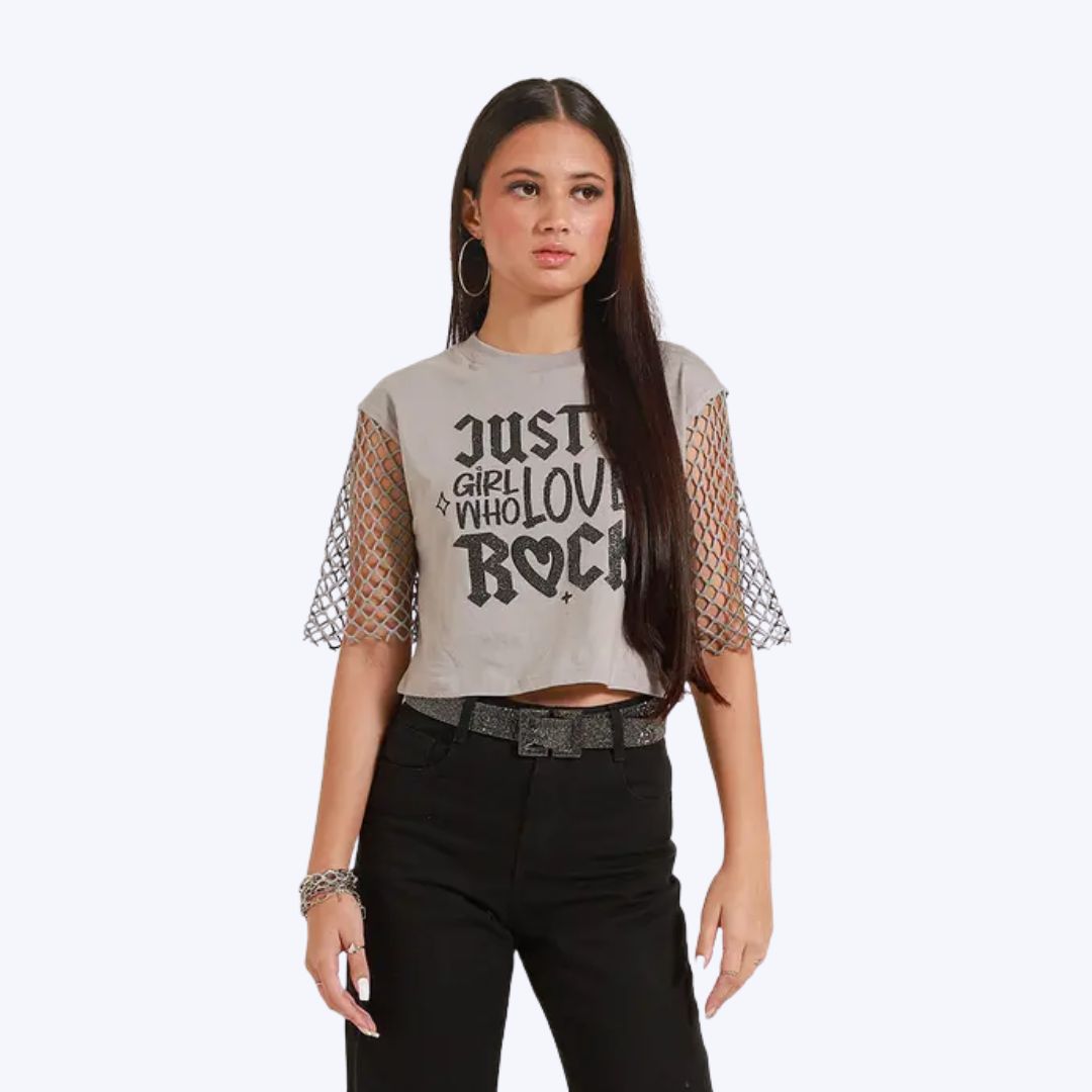 Blusa Tee Shirt Cropped Rock Juvenil Feminina Poah Noah