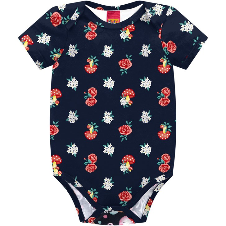 Roupa infantil feminina da marca Kyly, confeccionado com tecido de qulaidade, trazendo um maior conforto a criança. Body de cotton, manga curta, possui fechamento embaixo com botões, facilitando seu vestimento e a troca de fraldas.