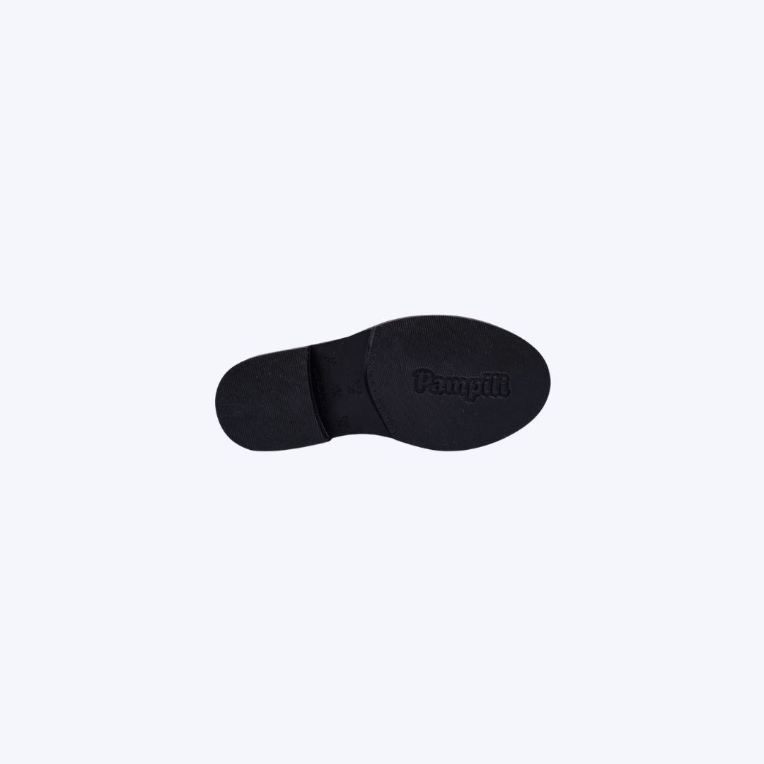 Seu cano longo e o acabamento preto liso trazem elegância e versatilidade, ideal para compor diversos looks – do casual ao mais arrumadinho. O detalhe exclusivo do pingente lateral com a letra “P” da Pampili adiciona um toque delicado e marcante, enquanto as costuras na parte traseira do cano realçam o design sofisticado da peça.