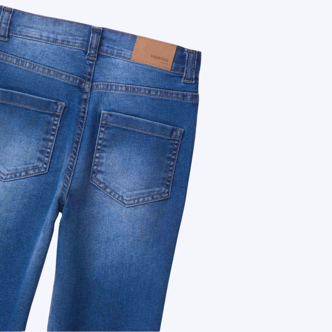 Durabilidade e qualidade garantidas pelo tecido jeans resistente da Hering Kids, pensado para o ritmo das crianças.