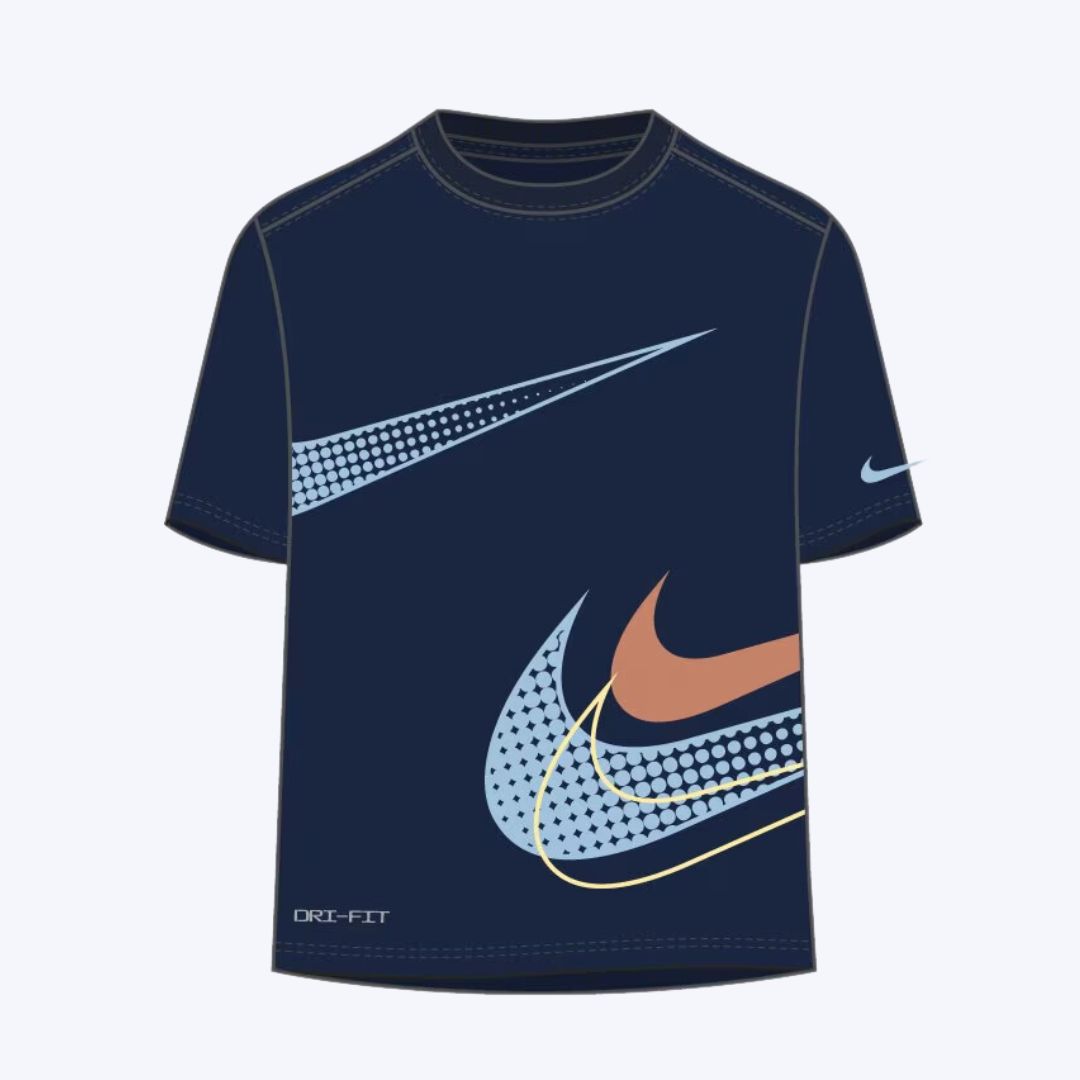 Esta camiseta dri-fit foi projetada para proporcionar conforto e estilo aos pequenos atletas. Feita em malha esportiva de alta qualidade, a cor azul marinho confere um visual moderno e versátil. A estampa personalizada da marca frente e verso adiciona um toque único e autêntico. Ideal para acompanhar as aventuras diárias dos garotos, seja durante a prática esportiva ou para compor um visual descolado no dia a dia.