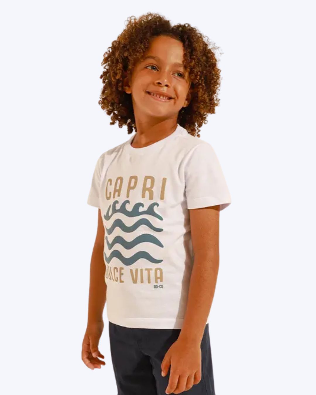 Esta camiseta infantil masculina é ideal para o clima quente, sendo uma excelente opção para a estação do Verão.