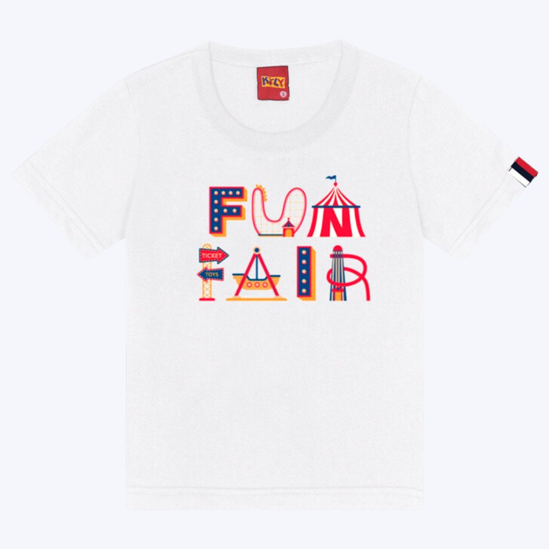 Design e Estilo: A Camiseta Manga Curta da Kyly está disponível em três cores clássicas e versáteis – branco, azul marinho e vermelho – permitindo que você escolha a que melhor combina com o guarda-roupa do seu filho. A estampa localizada "Fun Fair" no peito traz um design alegre e convidativo, capturando o espírito de uma feira divertida e prometendo um toque de diversão ao visual. O acabamento em debrum no decote adiciona um detalhe elegante e refinado, garantindo um ajuste confortável e bem-acabado.