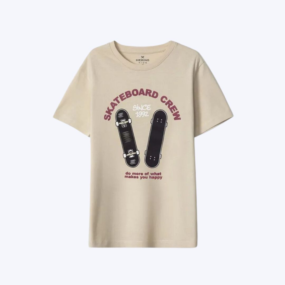 Camiseta Infantil Menino manga curta com estampa skateboard. Confeccionada em malha de algodão, leve e confortável. Essa camiseta kids conta com shape reto, soltinha e com ótimo caimento. Possui mangas curtas e estampa frontal com estilo próprio, perfeita para brincar e passear com a família. Felicidade também é ver seu filho bem vestido!