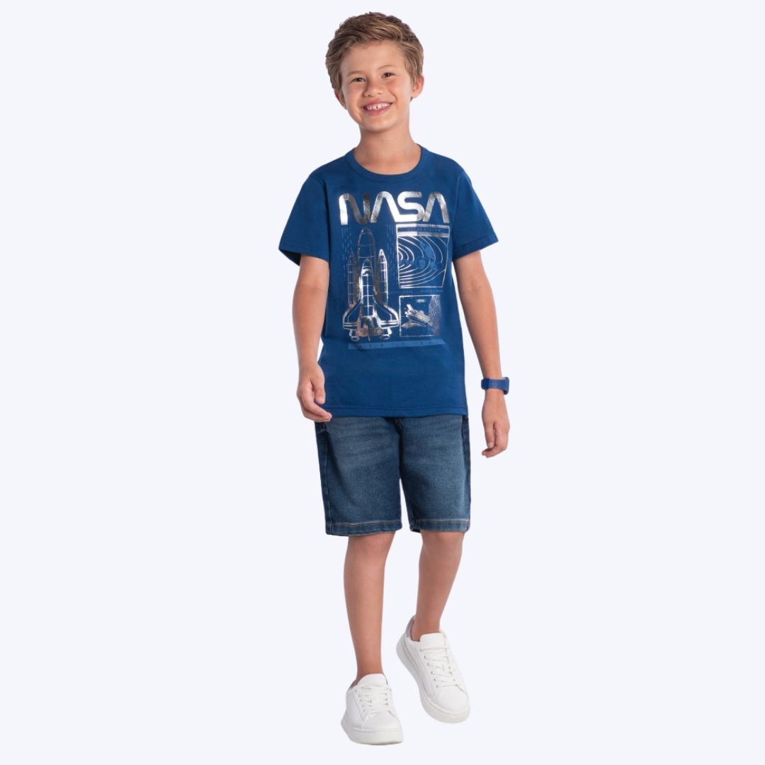 Camiseta Manga Curta Nasa Infantil Menino Brandili