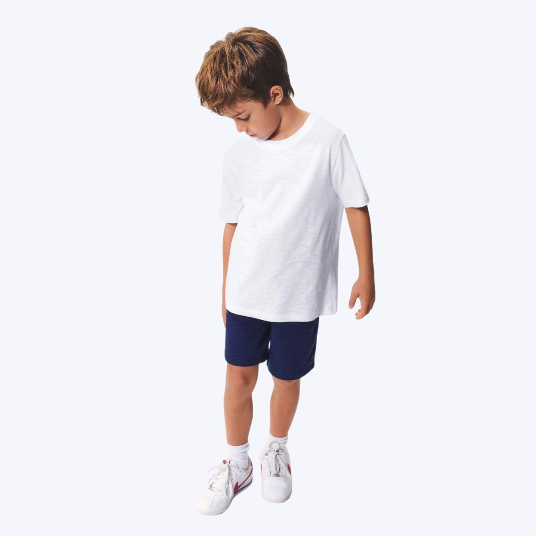 Combine esta camiseta branca com bermudas, shorts ou calças jeans para criar looks casuais e confortáveis para o seu menino.
