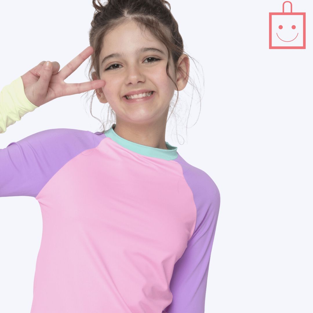 Sua modelagem de manga longa raglan, além de garantir maior liberdade de movimento, é perfeita para proporcionar um ajuste confortável durante todo o uso. Os punhos aplicados oferecem um toque extra de estilo e funcionalidade, enquanto as laterais sem costura proporcionam um ajuste ainda mais confortável, sem atritos, permitindo que sua filha aproveite ao máximo os momentos na água ou ao ar livre.
