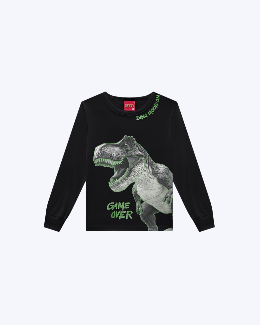 Esta camiseta infantil Kyly transforma o visual do dia a dia em uma experiência divertida e cheia de imaginação, ideal para os fãs de dinossauros.