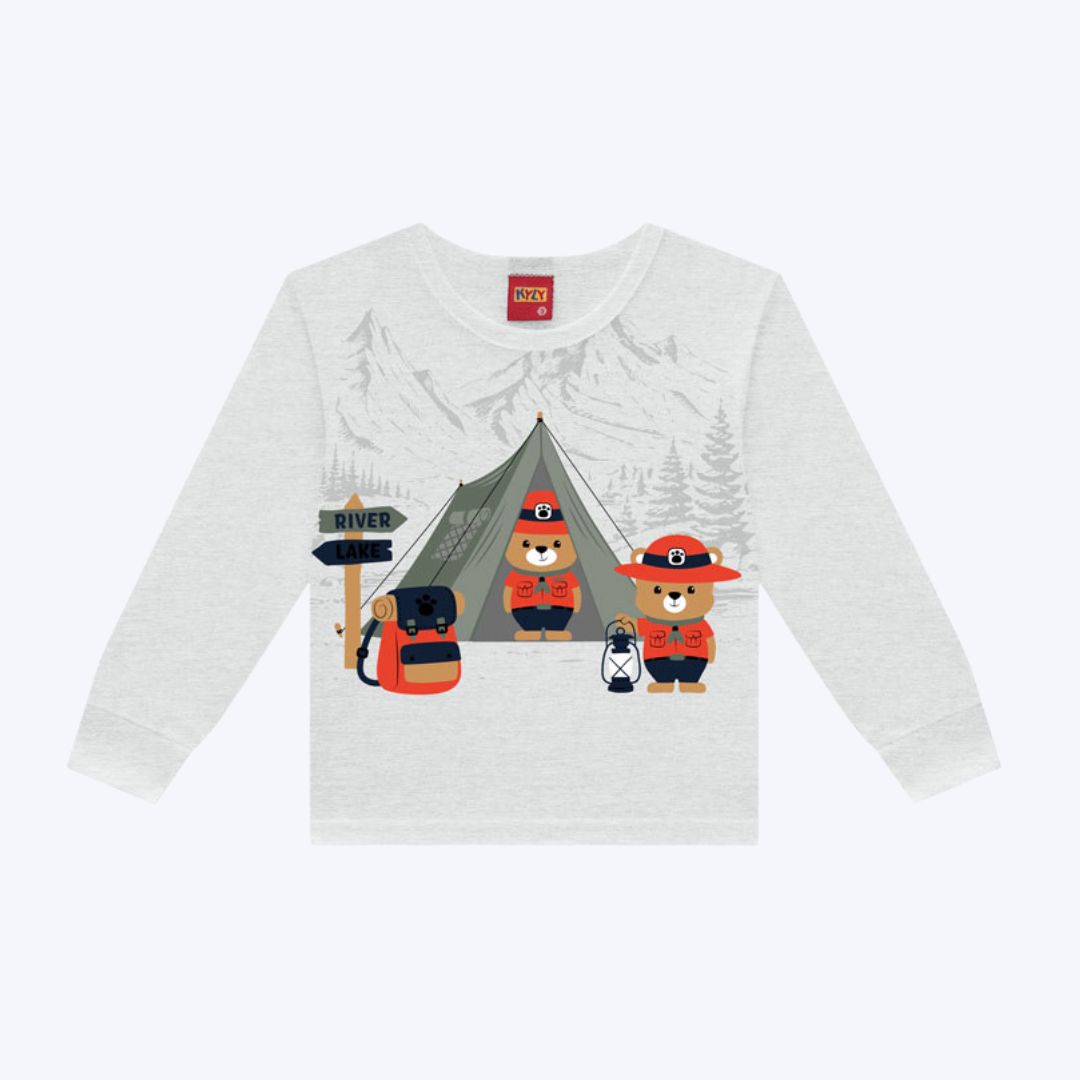A estampa frontal, com um adorável ursinho, traz um charme lúdico e aconchegante ao look. A imagem do ursinho é delicada e cheia de personalidade, tornando a peça ainda mais encantadora para os meninos. O modelo de manga longa oferece proteção extra contra o frio, mantendo o seu pequeno confortável durante o dia todo.
