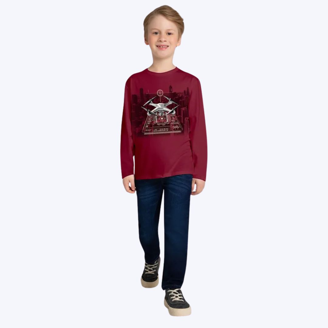 O grande destaque da peça é sua estampa exclusiva e superdetalhada, que apresenta um drone sobrevoando uma cidade futurista. Com um visual moderno e cheio de personalidade, essa camiseta estimula a imaginação das crianças e traz um toque de originalidade ao look. Cores vibrantes e um design dinâmico reforçam a proposta criativa, fazendo dessa peça uma excelente escolha para meninos que adoram tudo o que envolve tecnologia e inovação.