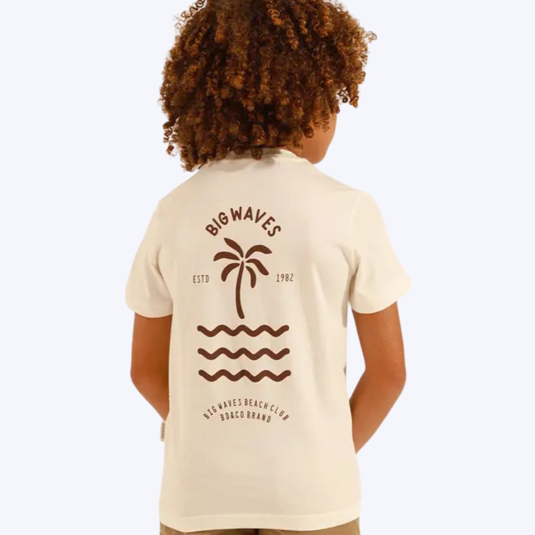 Desenvolvida pela BANANA DANGER, esta camiseta infantil masculina é a escolha ideal para os pequenos que buscam um visual moderno e despojado. Com sua modelagem comfy, manga curta e gola redonda, garante liberdade de movimento e bem-estar. Confeccionada em malha de alta qualidade, 100% Algodão, proporciona um toque suave e macio. O design se destaca pela estampa Big Waves: uma pequena na frente e uma estampa total de coqueiros na parte de trás, em tom neutro com toque zero, tornando-a uma peça versátil e cheia de personalidade.