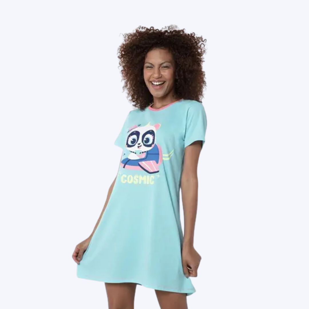 Camisola Adulto Feminina Manga Curta Panda Puket