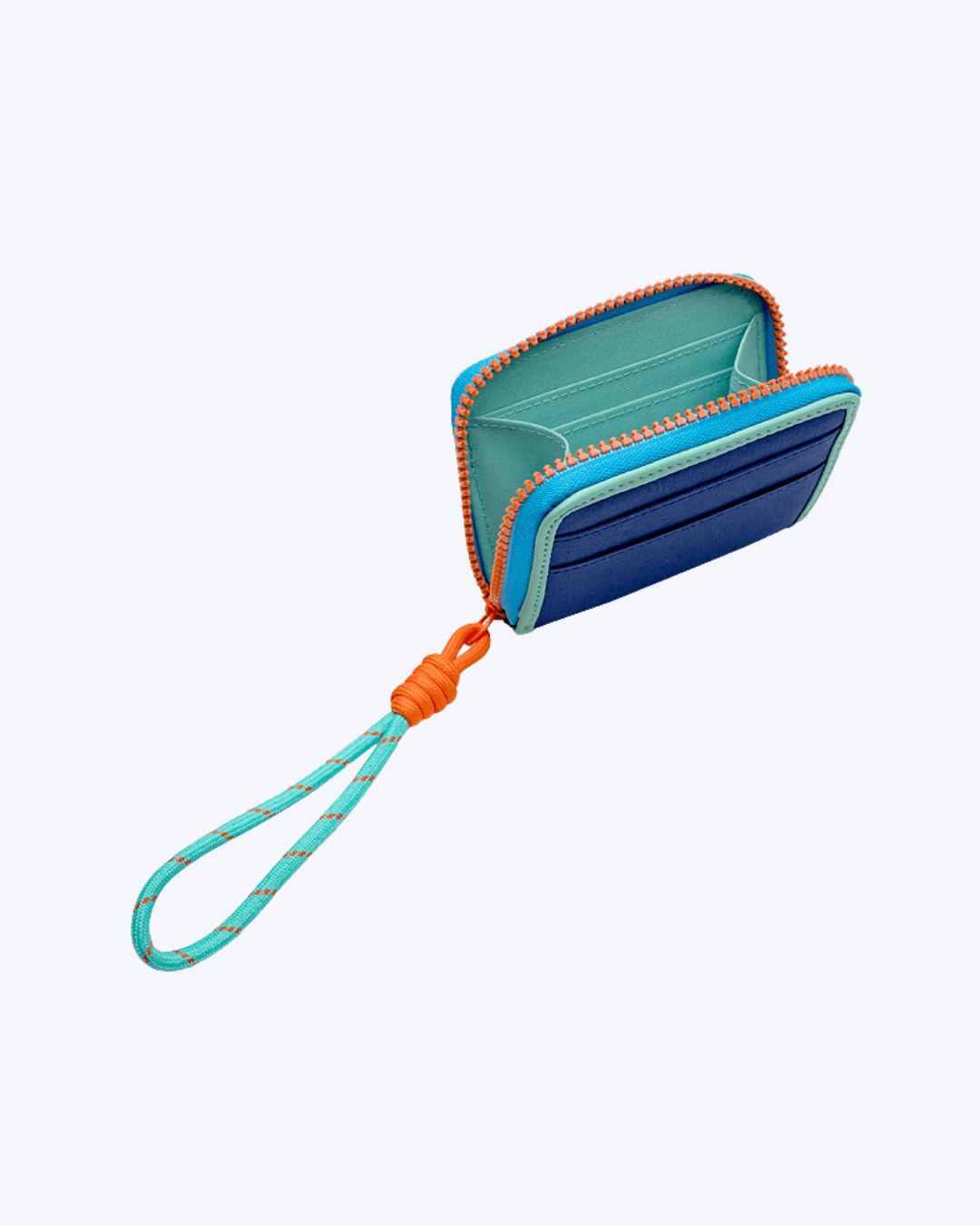 Carteira em nylon Color Block. Detalhe de PVC telado. Possui e alça de mão e bolso interno com fechamento em zíper.