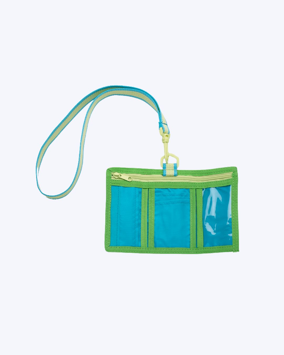 Carteira em nylon com estampa de Jacaré e alça de pescoço. Possui aplique emborrachado para fechamento e bolso interno com fechamento em zíper.
