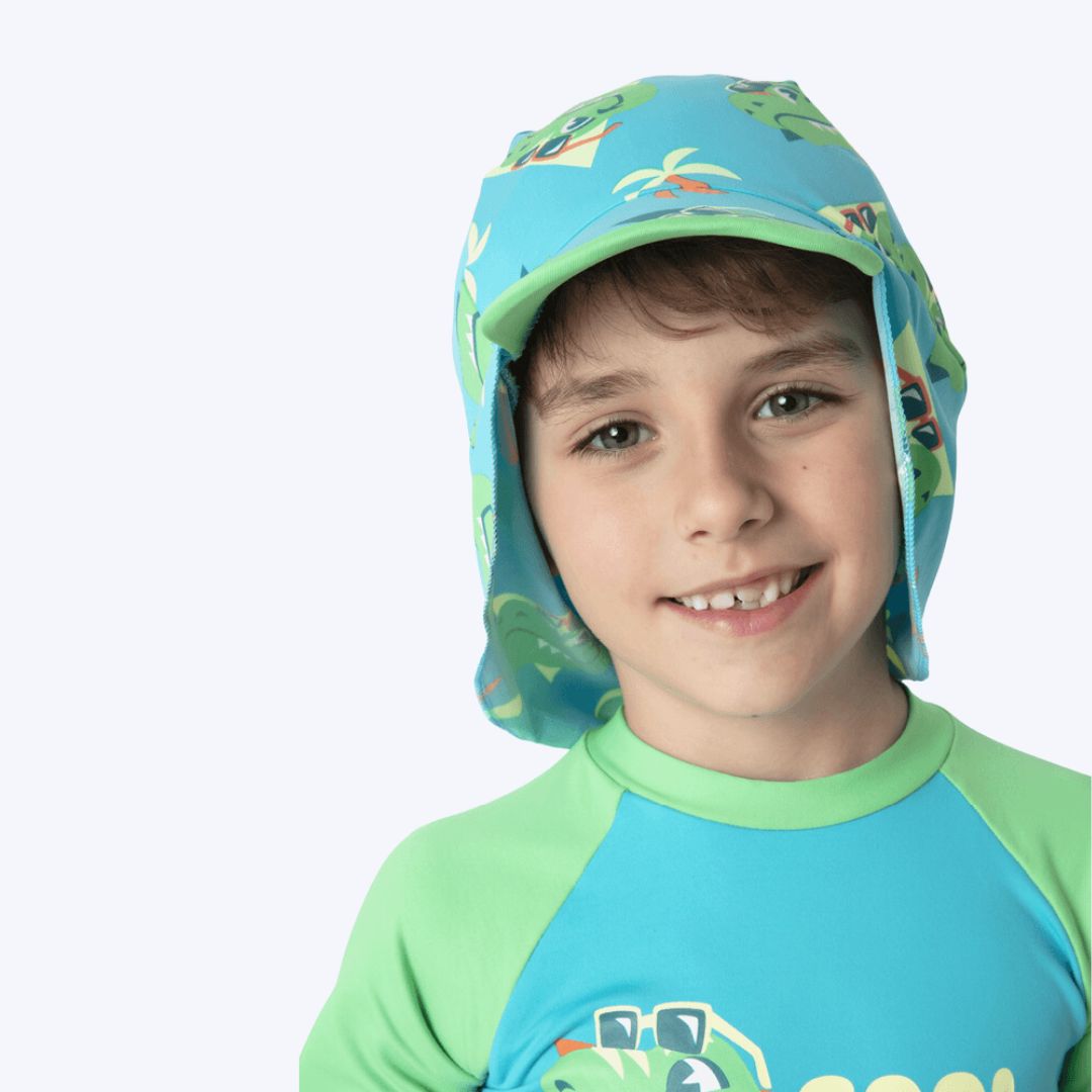 O Chapéu de Proteção Solar Dino Miami Infantil Menino Puket é a escolha perfeita para os pequenos que adoram se divertir ao ar livre com muito estilo e segurança. Com uma estampa exclusiva de dinossauros em tom verde vibrante, o chapéu combina diversão e proteção, ideal para momentos na praia, piscina ou atividades ao ar livre.