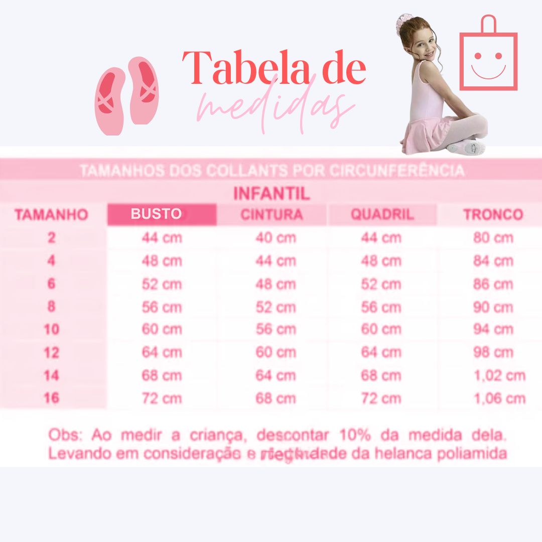 Fácil Cuidado e Manutenção: Além de ser uma peça linda e funcional, o collant é prático de cuidar. O tecido resistente mantém sua forma e cor mesmo após várias lavagens, assegurando que a bailarina esteja sempre pronta para dançar.