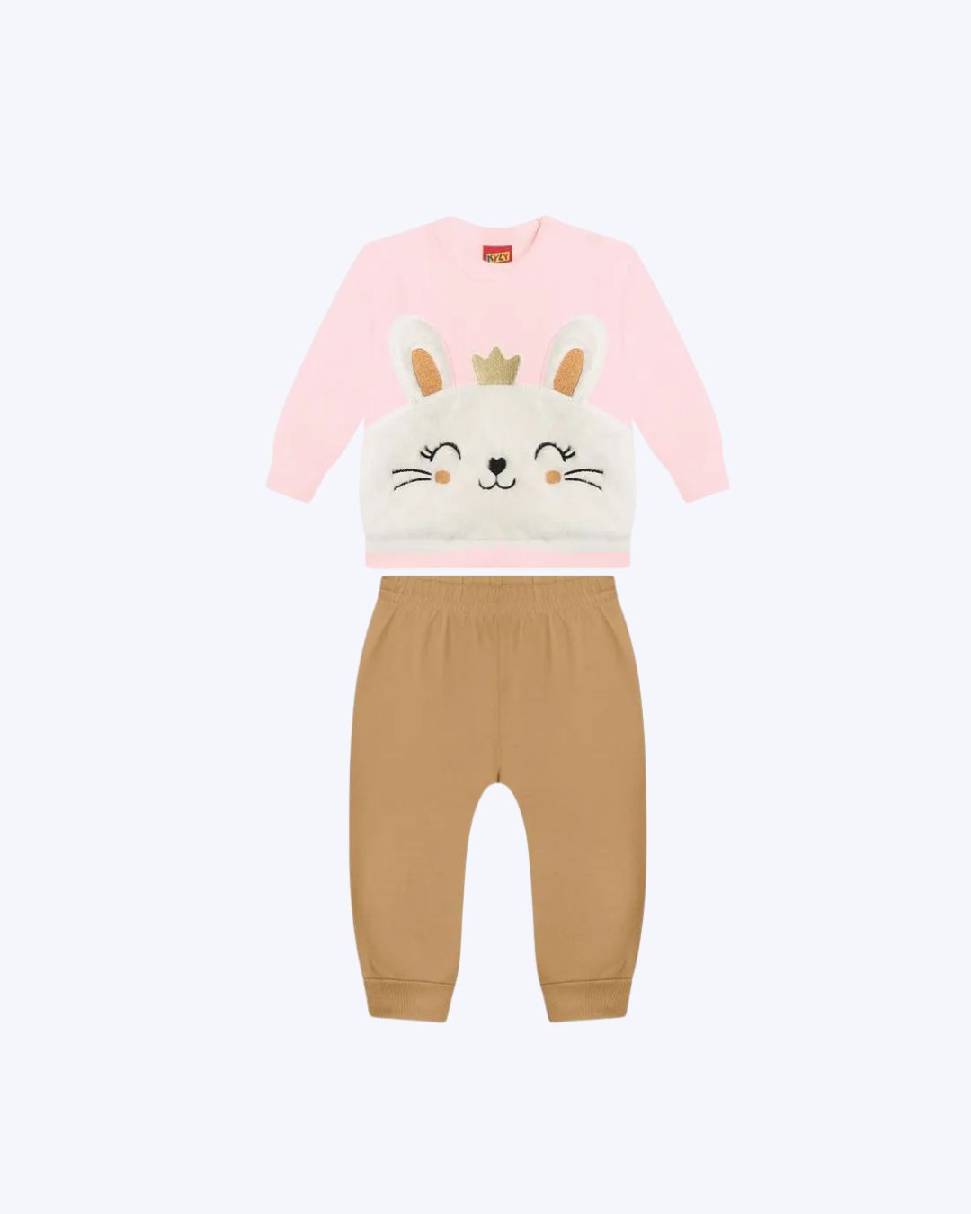 Encantador e cheio de delicadeza, este conjunto bebê Kyly envolve os pequenos em conforto e ternura, perfeito para momentos especiais e cheios de carinho. Inspirado no universo lúdico da infância, o conjunto traz detalhes suaves e um visual adorável que combina aconchego e estilo para os dias mais fresquinhos. O casaco é confeccionado em moletom peluciado 100% algodão, proporcionando toque macio e agradável à pele sensível do bebê. A modelagem confortável permite liberdade de movimentos, enquanto os punhos e a barra em ribana ajudam no ajuste delicado ao corpo. O destaque da peça fica por conta do bordado de coelhinha com coroa, enriquecido com detalhes em pelinhos, criando uma textura suave e charmosa que valoriza o acabamento e traz ainda mais encanto ao visual. Os botões no ombro facilitam o vestir, tornando a peça prática para o dia a dia.