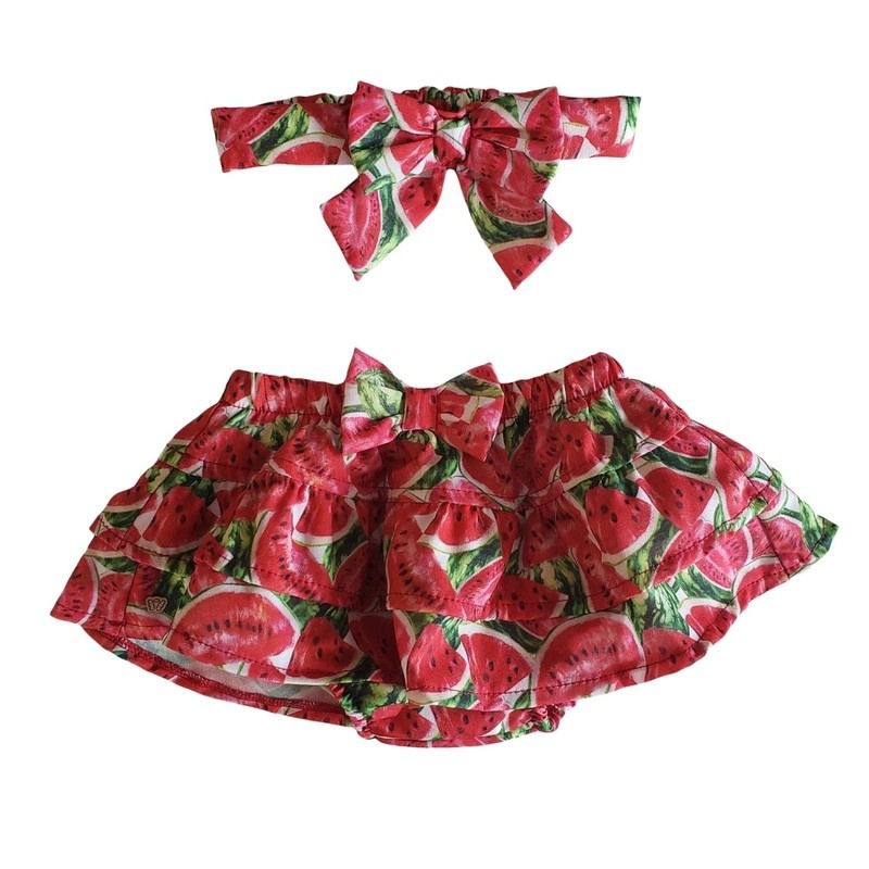 Conjunto Bebê Feminino Body e Short Saia Melância Anjos Baby 213632