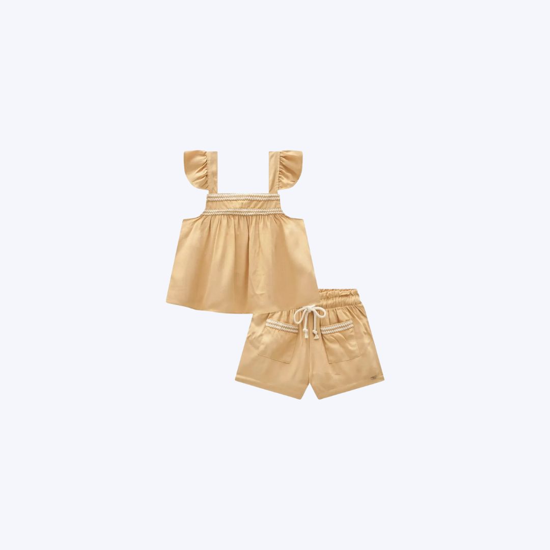 Conjunto Blusa Bata Boxy E Shorts Em Viscose Infantil Menina Infanti