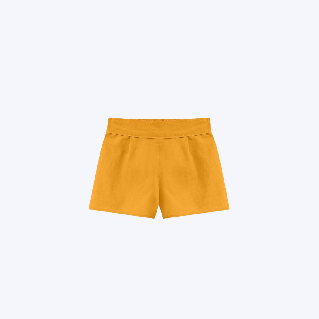Conjunto Blusa Cropped Branca e Shorts Amarelo Infantil Menina Nanai