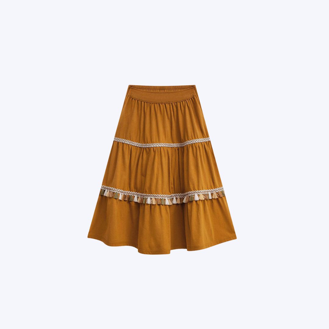 A combinação de blusa cropped e saia midi oferece uma versatilidade que se adapta a diversas ocasiões, do casual ao mais arrumadinho.