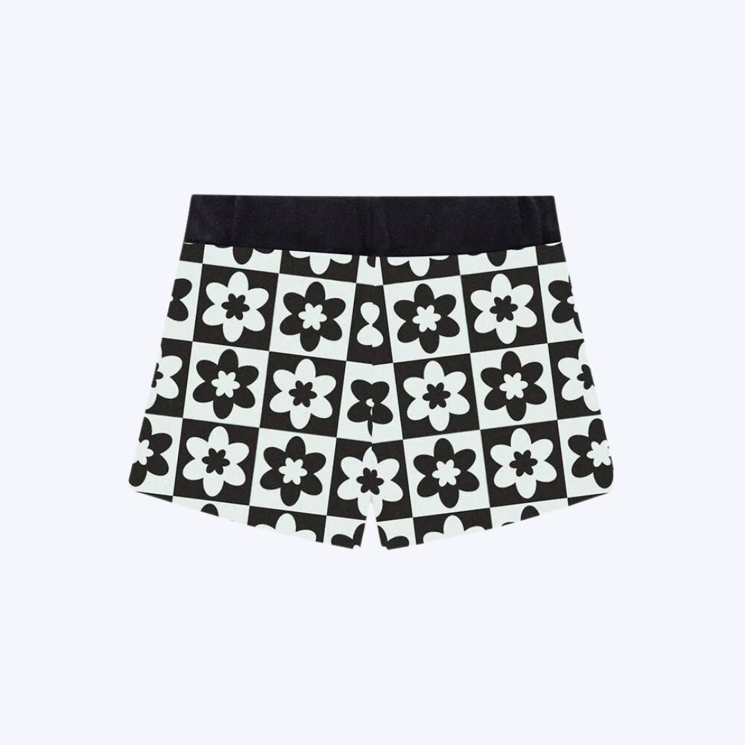 O short é feito em cotton com uma mistura de 50% algodão e 50% acrílico, oferecendo suavidade e resistência, ideal para o dia a dia das meninas. A estampa geométrica de flores em tons harmoniosos confere um visual alegre e moderno, combinando perfeitamente com a delicadeza da blusa. A cintura com elástico ajustável e a barra com acabamento em tricô garantem um ajuste perfeito e um toque de charme extra.