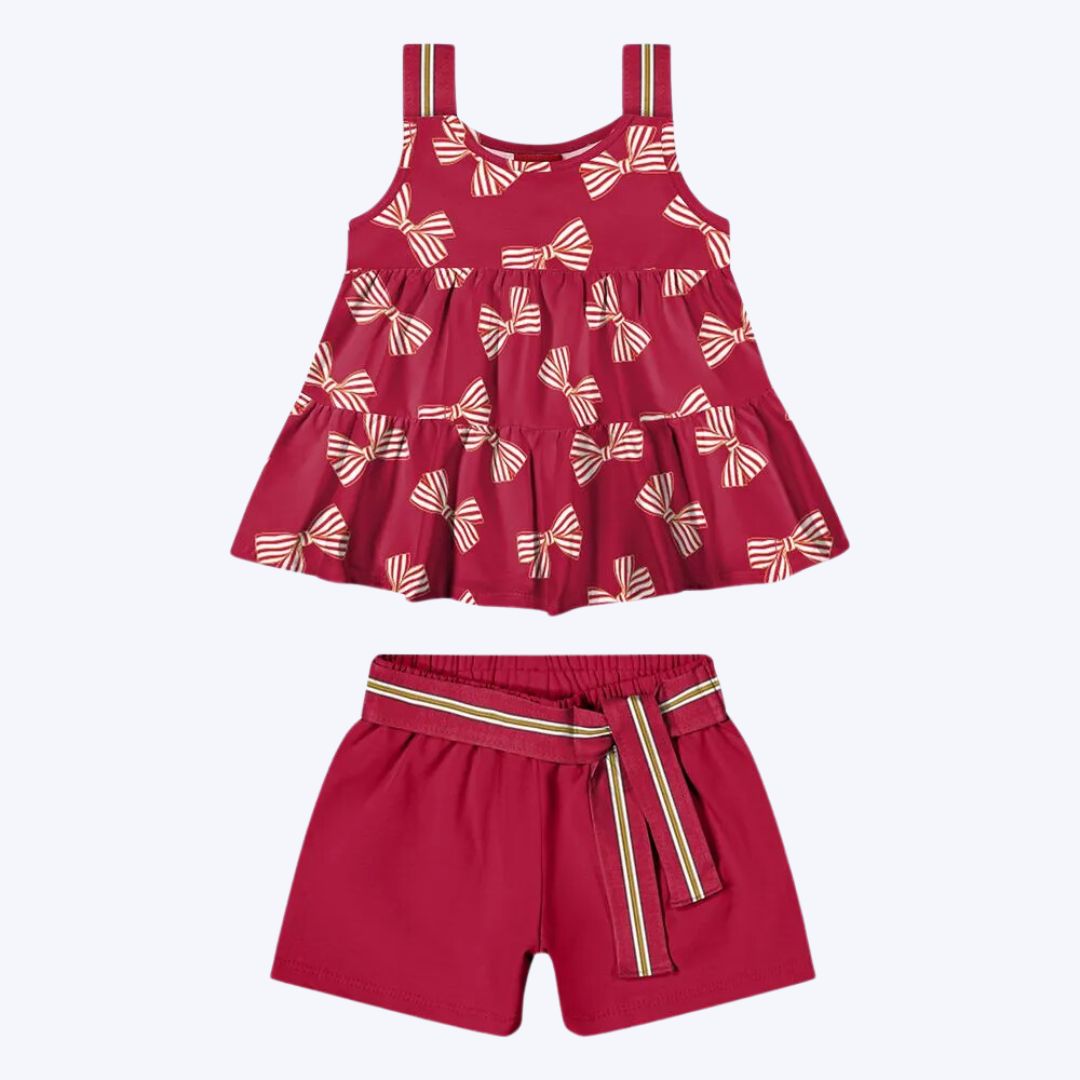Conjunto Blusa de Alça Laço e Short Liso Infantil Menina Kyly