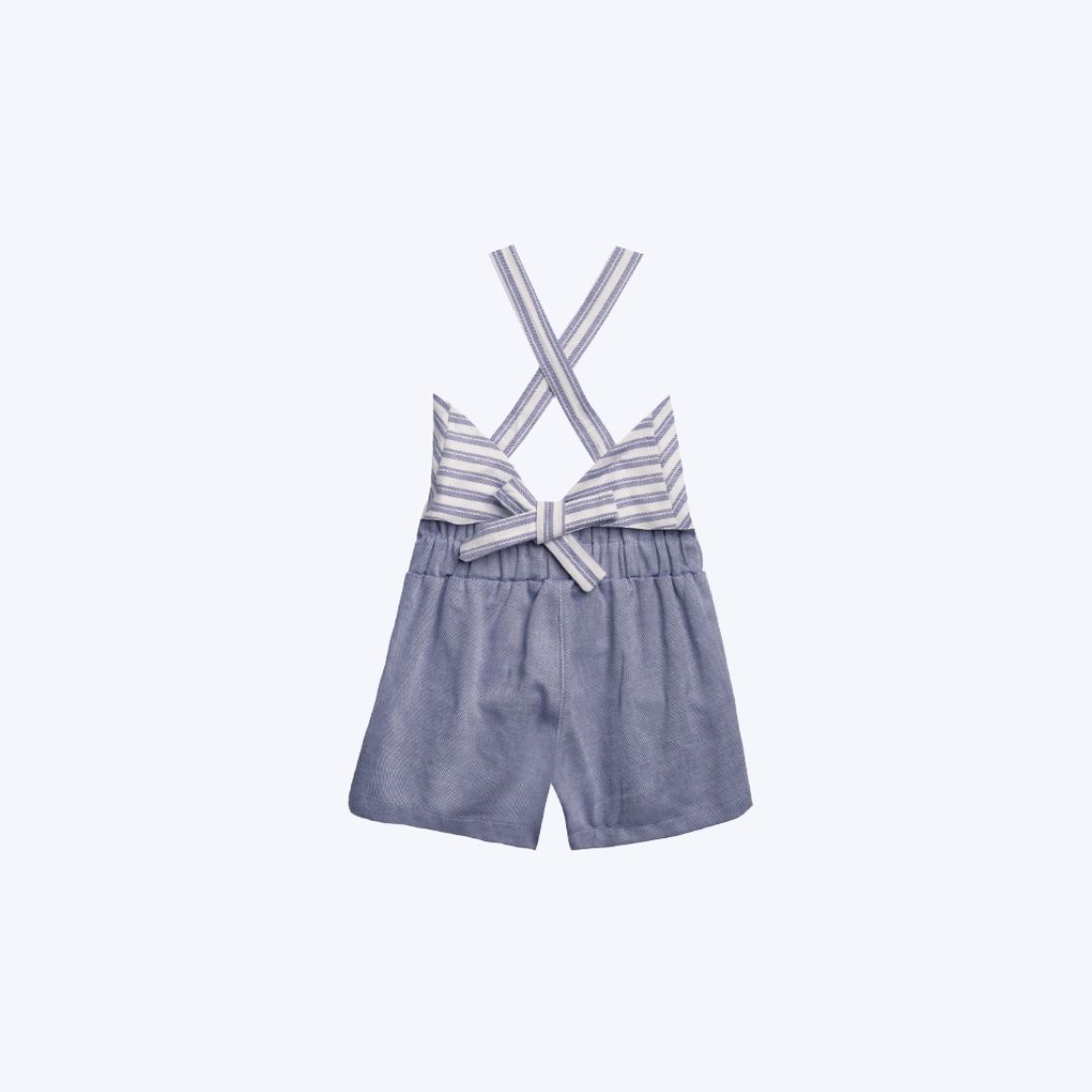 Conjunto Blusa de Alcinha Cavada Listras e Shorts Azul Infantil Menina Precoce