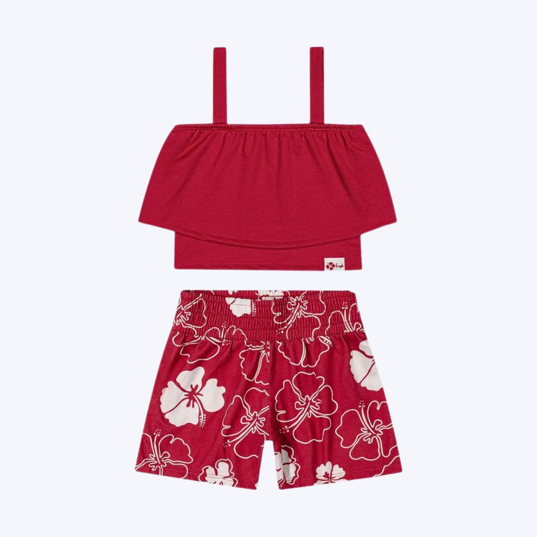 Conjunto Blusa e Short Estampa Flores Infantil Menina Kyly
