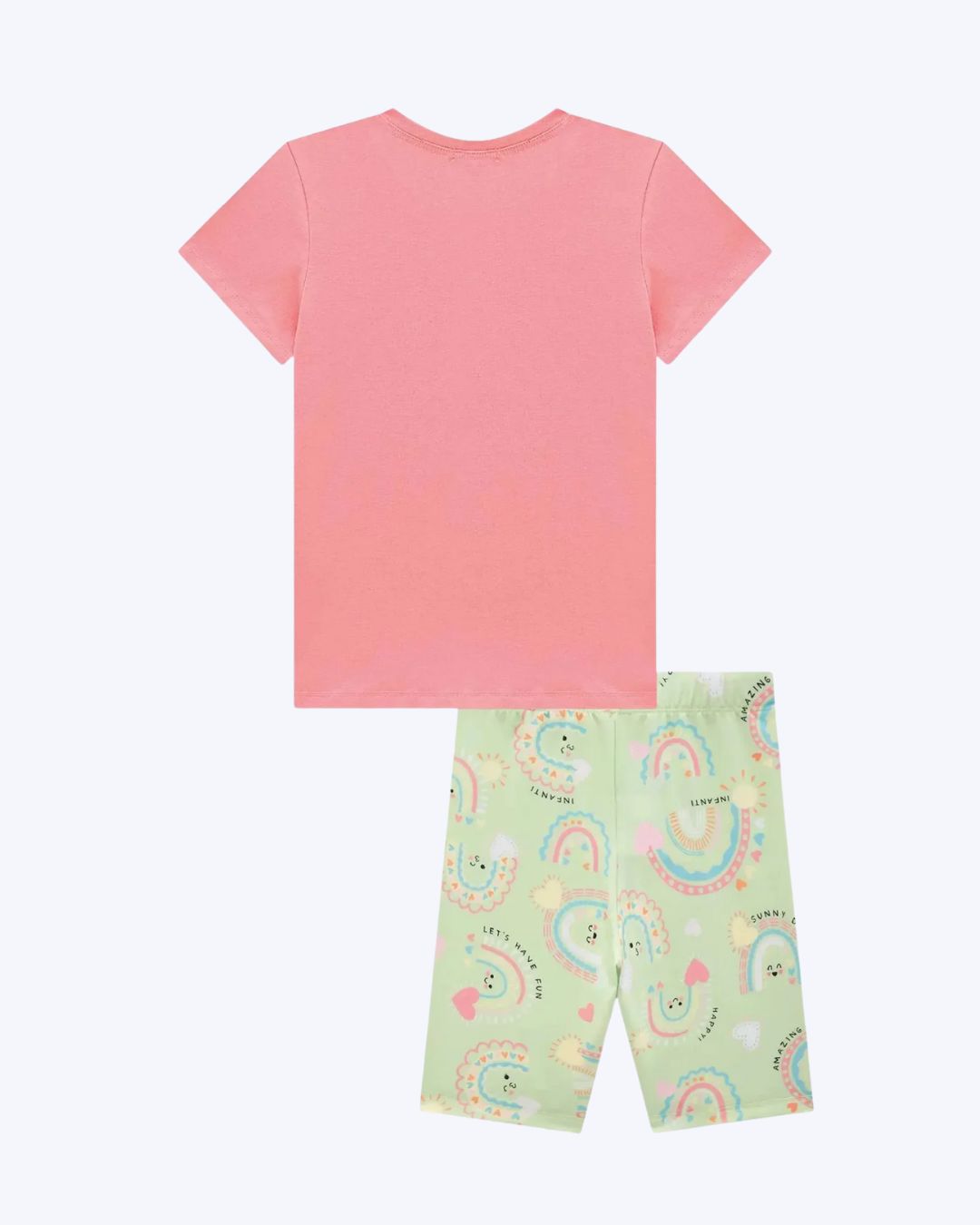 Este Conjunto Infanti é a escolha ideal para meninas que buscam conforto e estilo em um só look. Composto por uma blusa alongada em meia malha e uma moderna bermuda biker em malha power, o conjunto 83448 garante liberdade de movimento e um caimento perfeito. O design é enriquecido com uma sublimação divertida, aplicações de strass e um delicado barbicacho, que adicionam um toque de charme especial. Disponível em cores super estilosas como branco e rosa, é perfeito para diversas ocasiões.