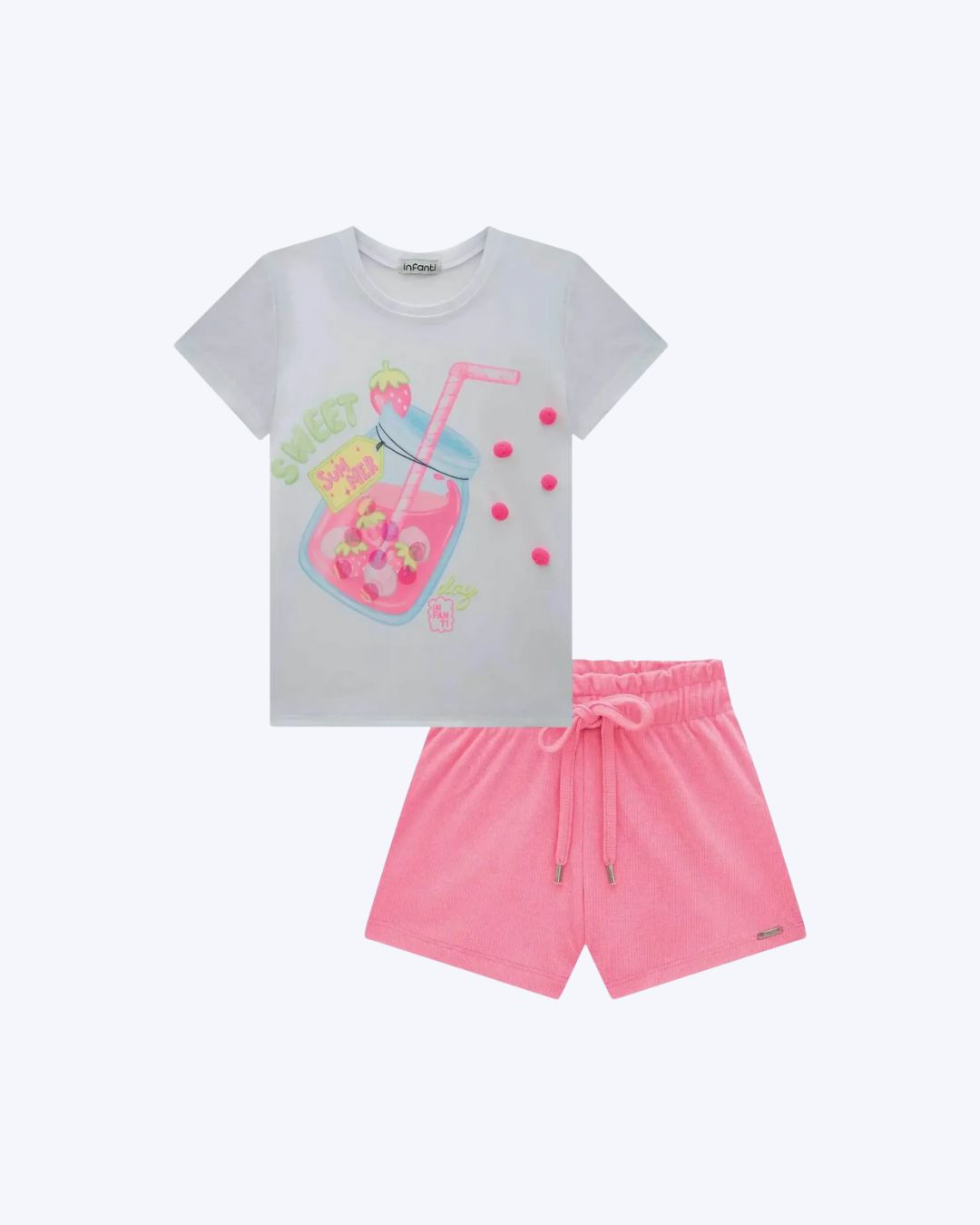 Conjunto Blusa em Meia Malha e Shorts em Canelado Liz Infantil Feminino Infanti