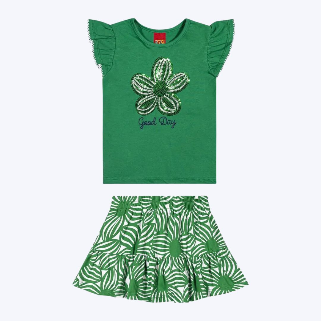 Conjunto Blusa Manga Curta e Saia Infantil Menina Kyly