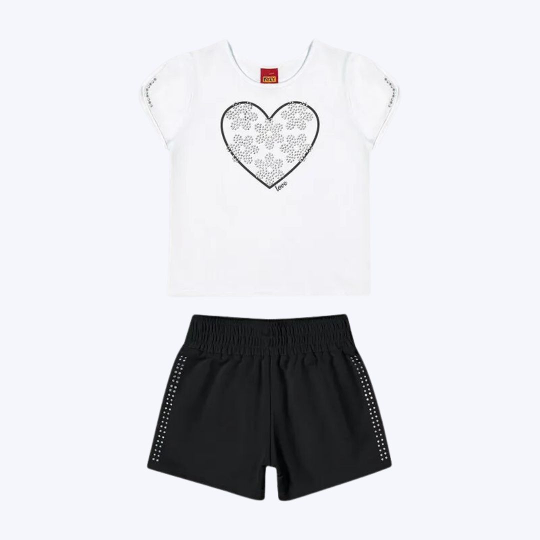 Conjunto Blusa Manga Curta e Short Moletom Juvenil Menina Kyly