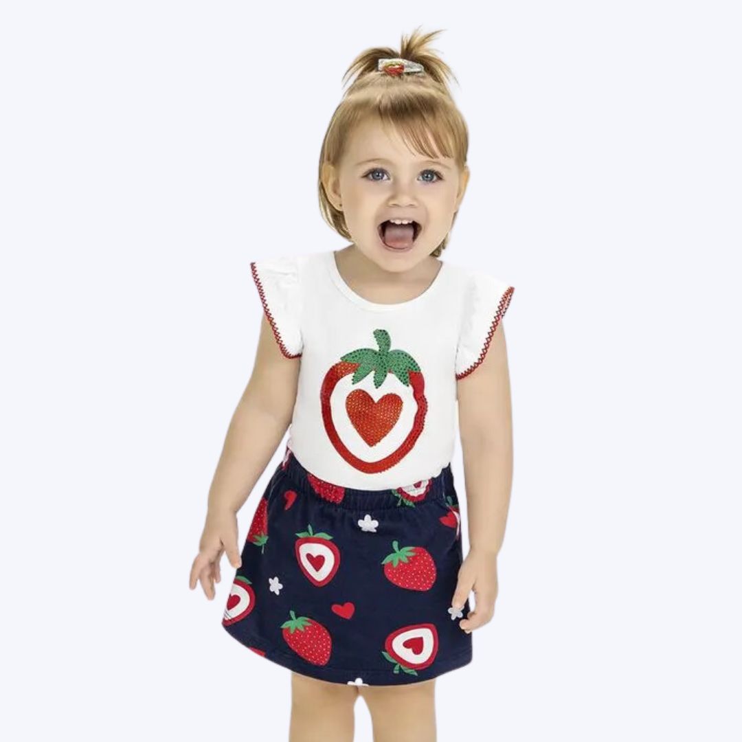 Conjunto Blusa Manga Curta e Short-Saia Infantil Menina Kyly