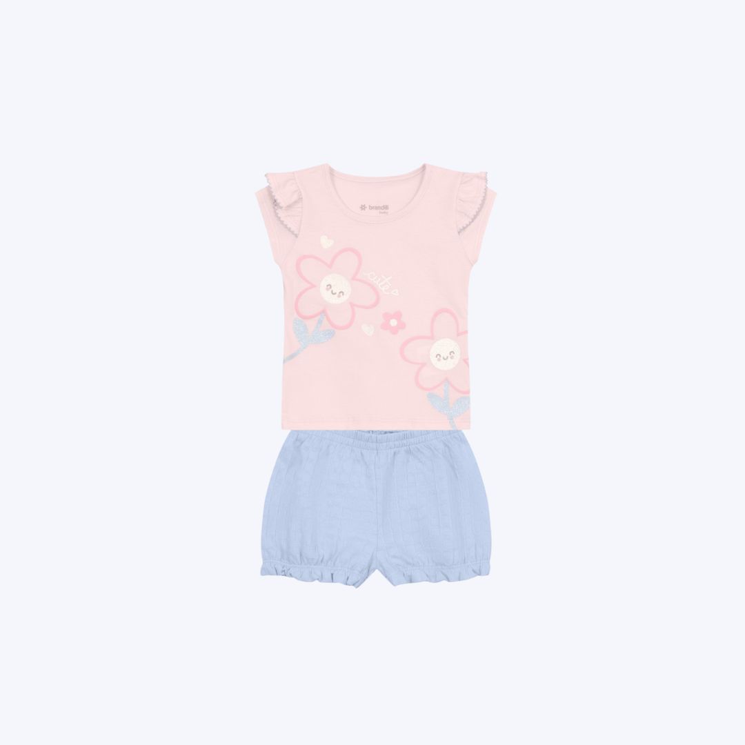 Conjunto Blusa Manga Curta e Shorts Bebê Menina Brandili