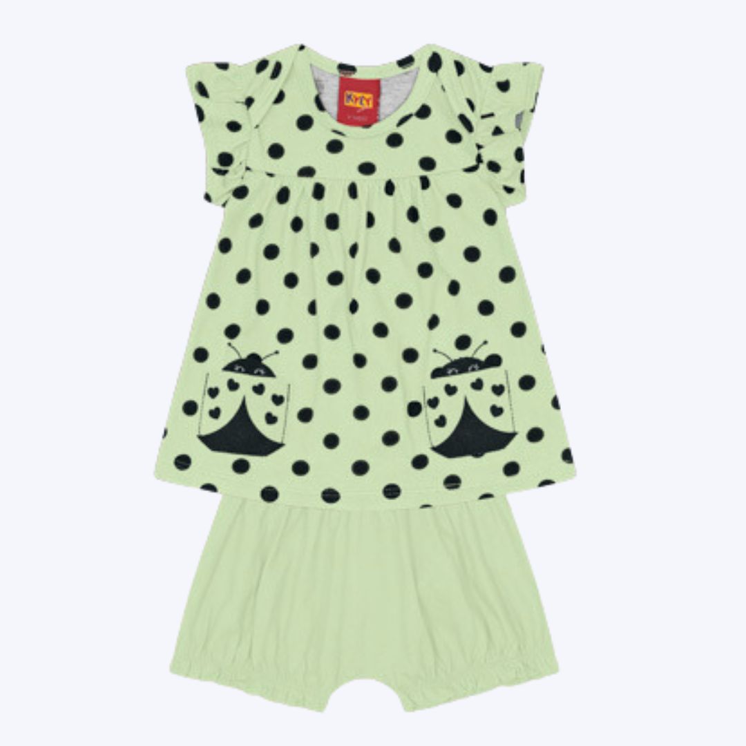 Conjunto Blusa Manga Curta e Shorts em Algodão Bebê Menina Kyly
