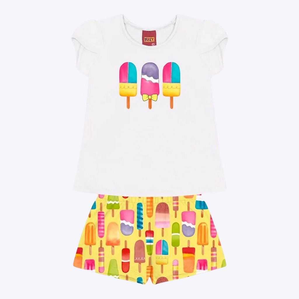 Conjunto Blusa Manga Curta e Shorts Estampa Picolé Infantil Feminino Kyly